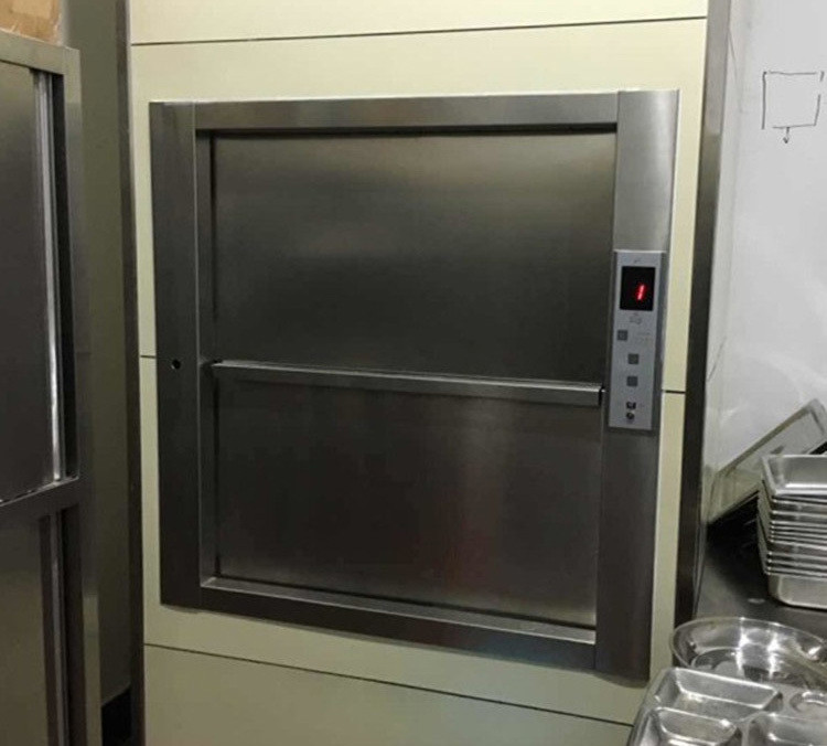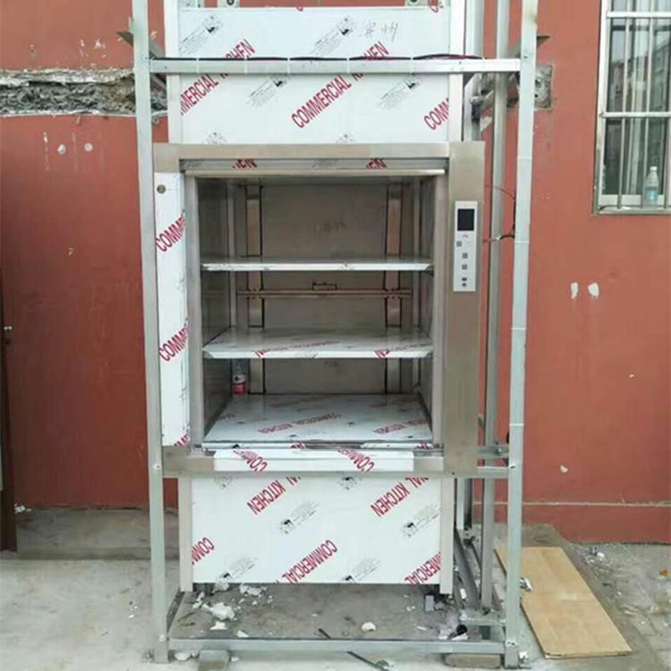 我們的是曳引機傳菜電梯,速度每分鐘24米,靜音運行、立煙不倒、滴水不漏。載重可分為100 200 300 500公斤,一般餐飲業選擇100和200公斤就能滿足日常使用需求。轎廂可分為窗口式和落地式兩種,轎廂的尺寸可根據您的需求,給您提供專業個性化的方案。