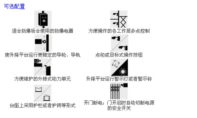 由于受建筑物或工作擱層的高度,所載物體的大小、重量及其它使用要求的影響,其型號有很多不確定因素。可根據實際使用環境和操作要求,對升降臺的升高、承載量、平臺面積等進行設計,以便取得理想的使用效果。