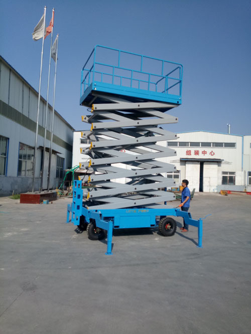 移動式升降機是用途廣泛的高空作業專用設備。它的剪叉機械結構,使升降臺起升有較高的穩定性,寬大的作業平臺和較高的承載能力,使高空作業范圍更大、并適合多人同時作業。升降動力分為220V或380V電源,柴油機,或電瓶動力源,特殊環境也可采用防爆泵站及防爆電器。升高4——22米,載重0.3—3噸。采用意大利和國產液壓泵站,臺面使用防滑絕緣扣板,具有防滑,絕緣、安全,請放心使用。它使高空作業效率更高,安全更保障。