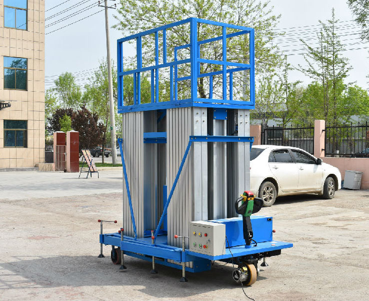 六柱鋁合金升降機結構緊湊,采用高強度專用鋁型材,重量輕,移動靈活,外形美觀,平臺自身佩戴保險鋼繩和安全保護裝置。佩戴上控開關或遙控系統可靈便進出電梯,主要用于高檔賓館、會場、大型商場的布置、燈具維修及高空作業。