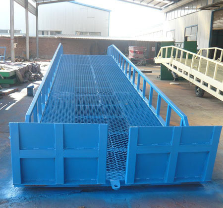 移動(dòng)式登車(chē)橋是與叉車(chē)配合使用的貨物裝卸專(zhuān)用輔助設(shè)備,有了它叉車(chē)能直接從地面駛?cè)肫?chē)車(chē)廂內(nèi)部進(jìn)行批量裝卸作業(yè)。產(chǎn)品采用人工液壓動(dòng)力,不需接動(dòng)力電源。只需單人操作,即可實(shí)現(xiàn)貨物的安全快速裝卸。它可使企業(yè)減少大量勞動(dòng)力,成倍提高裝卸作業(yè)效率,加快貨物流通速度,獲取更大經(jīng)濟(jì)效益。